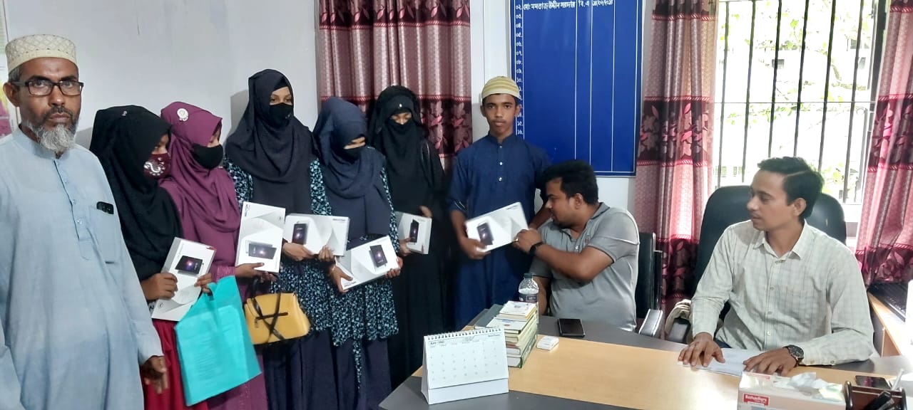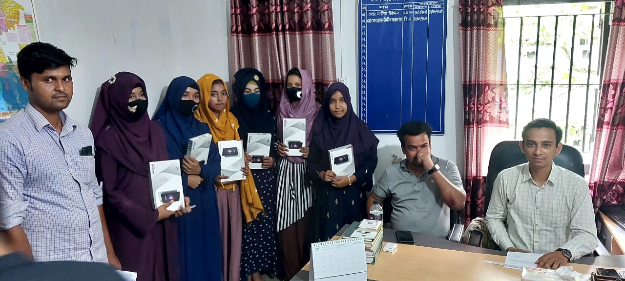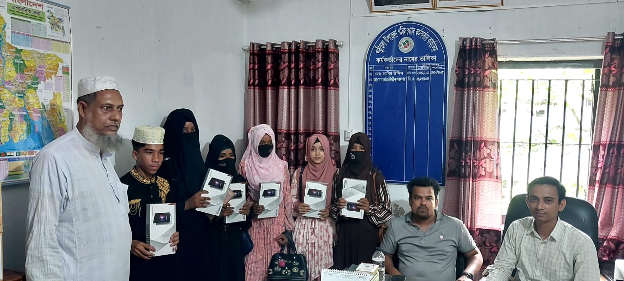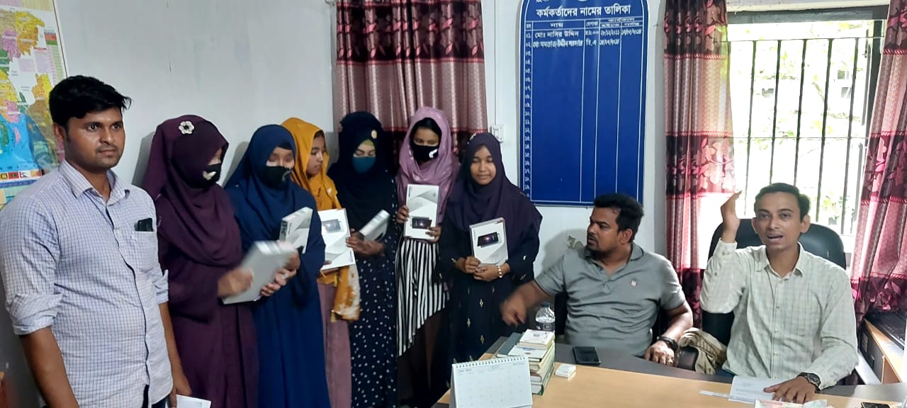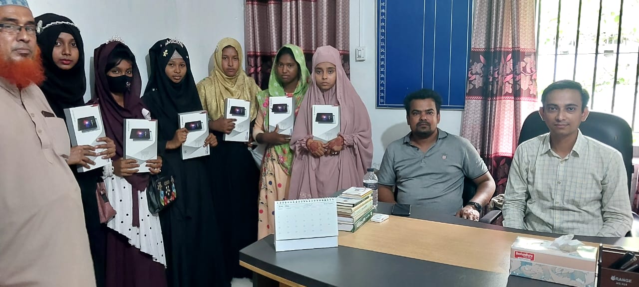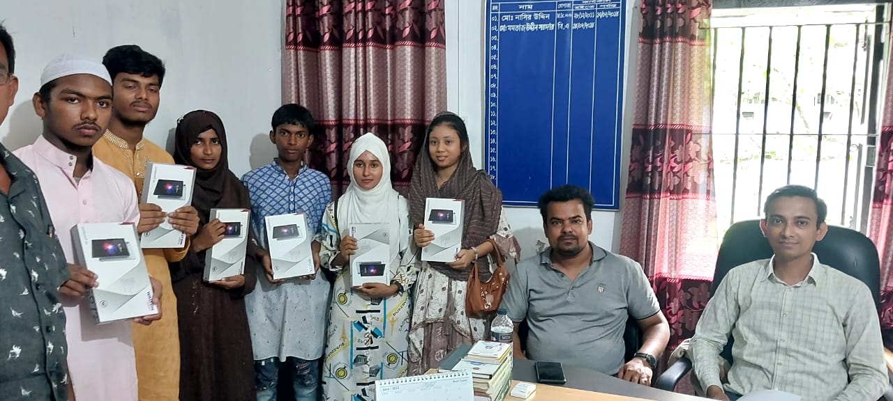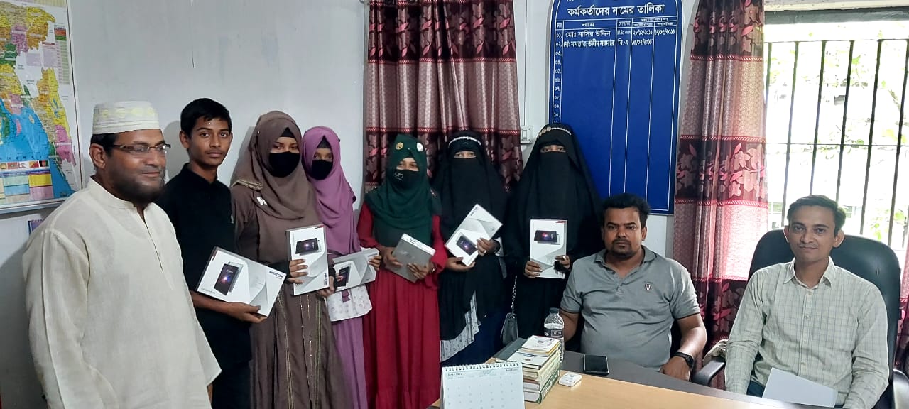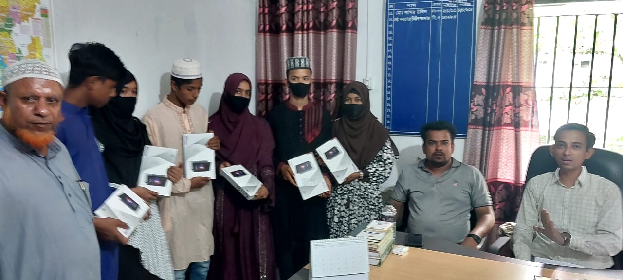 শিক্ষা সহায়ক উপহার হিসেবে মাধ্যমিক বিদ্যালয় সমমানের মাদ্রাসাসমূহের ৯ম ও ১০ম শ্রেণির সমন্বিত মেধা তালিকায় ১ম, ২য় ও ৩য় স্থান অর্জনকারী মেধাবী  শিক্ষার্থীদের মধ্যে "জনশুমারি ও গৃহগণনা ২০২১"প্রকল্প এর ট্যাবলেট বিতরণ