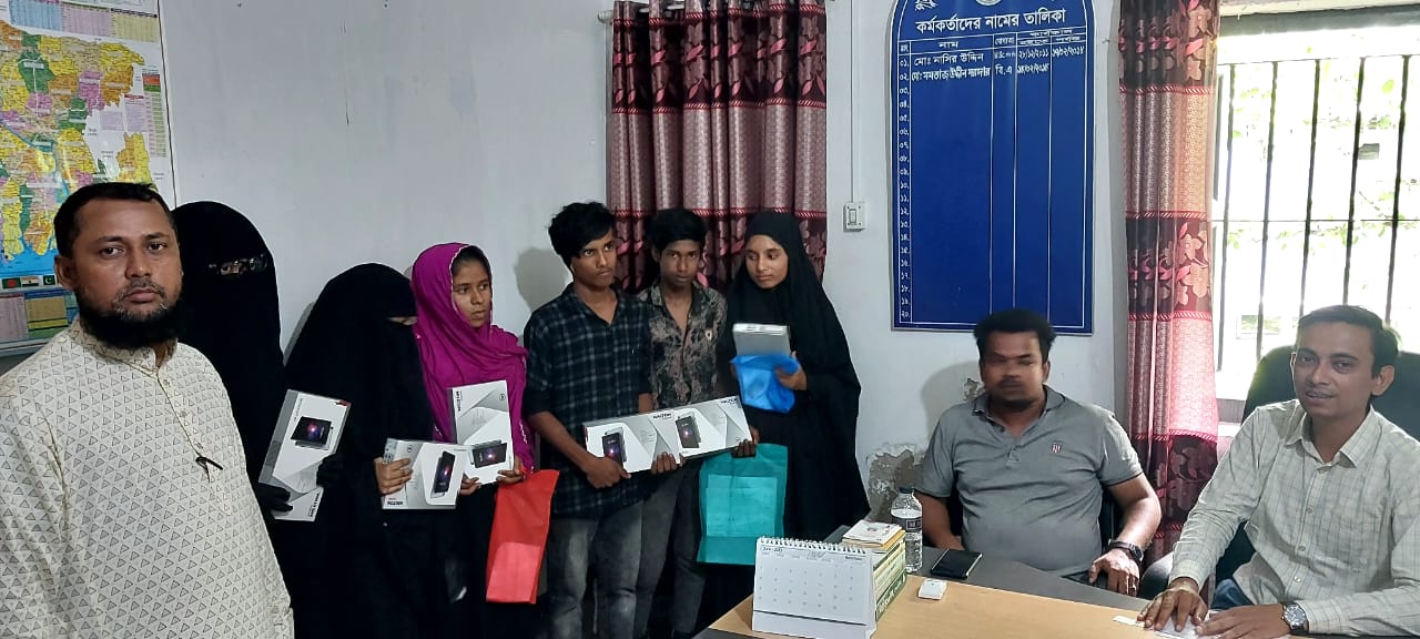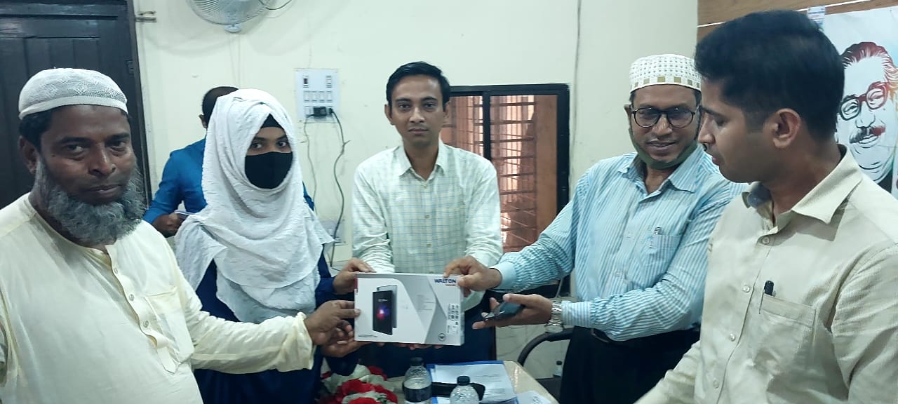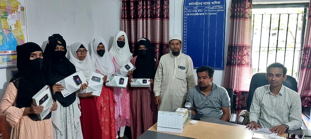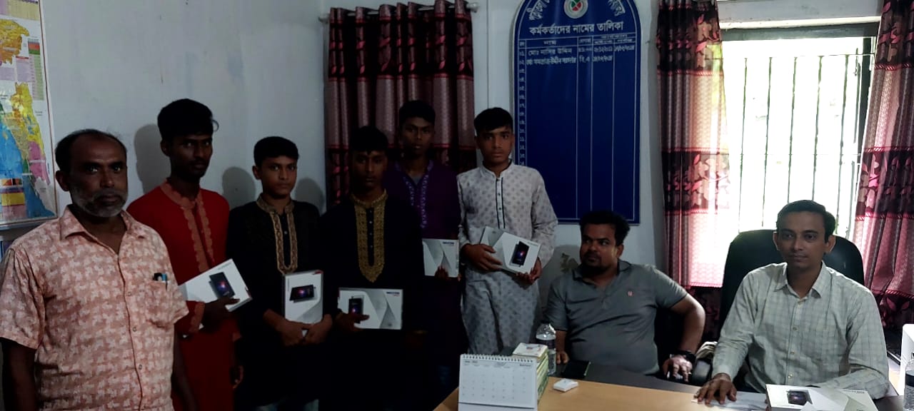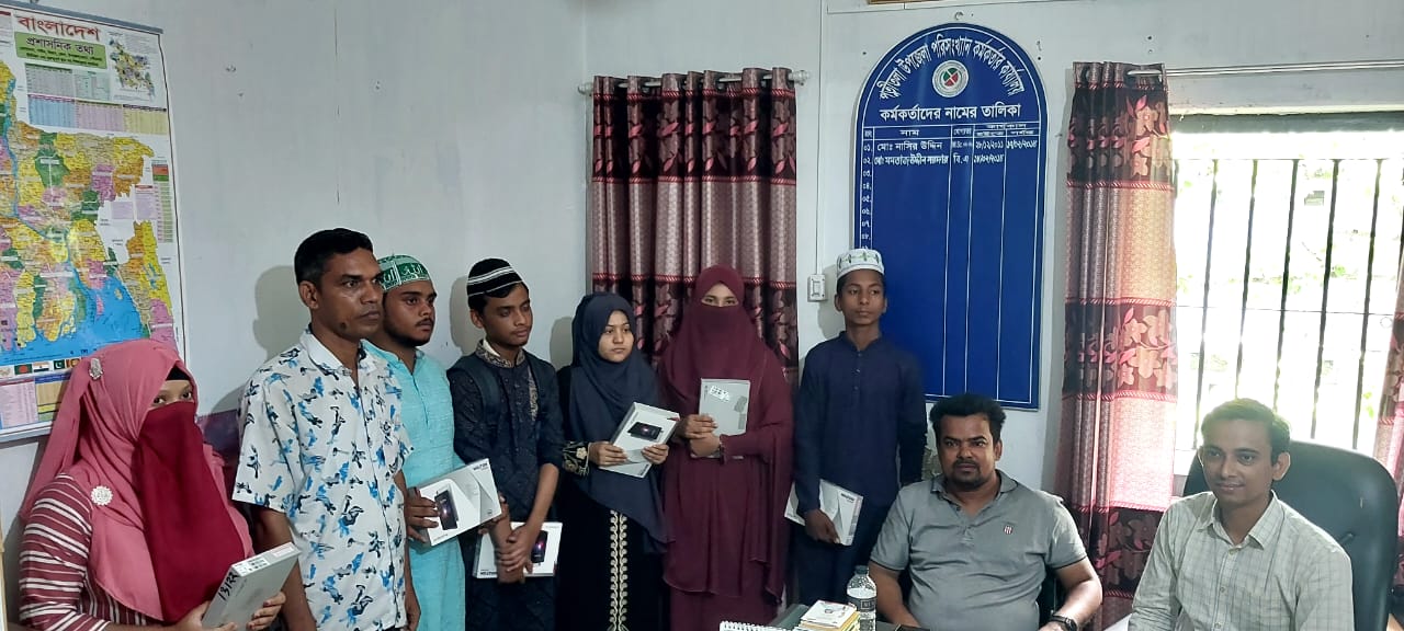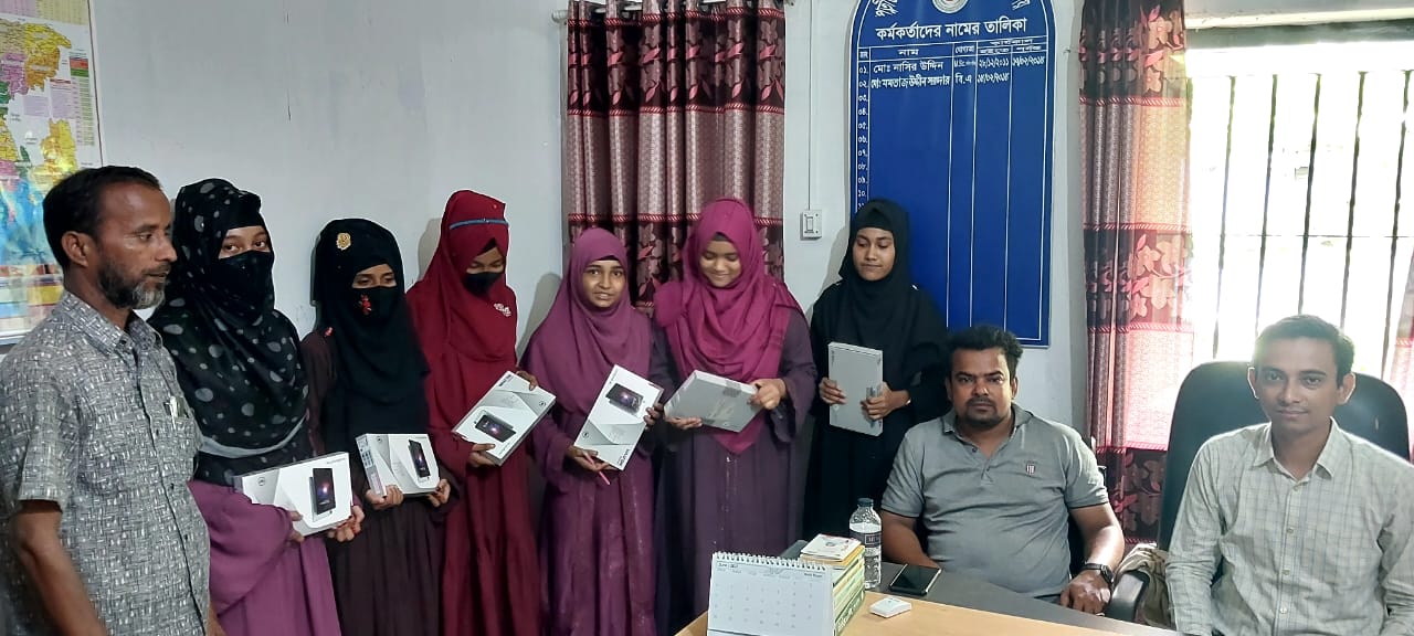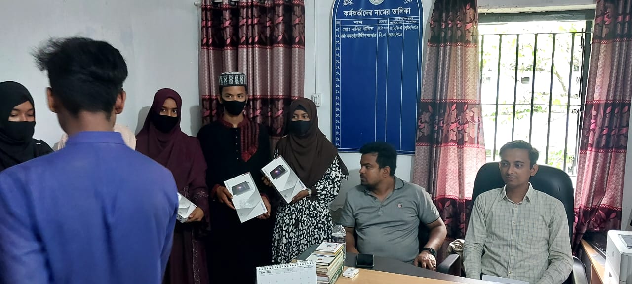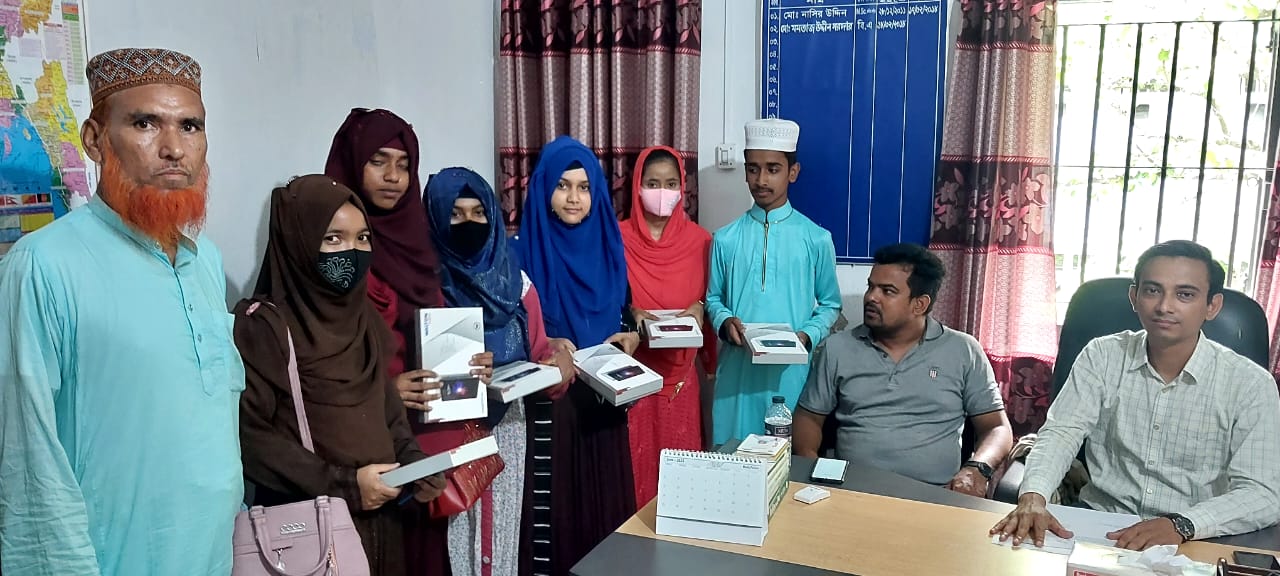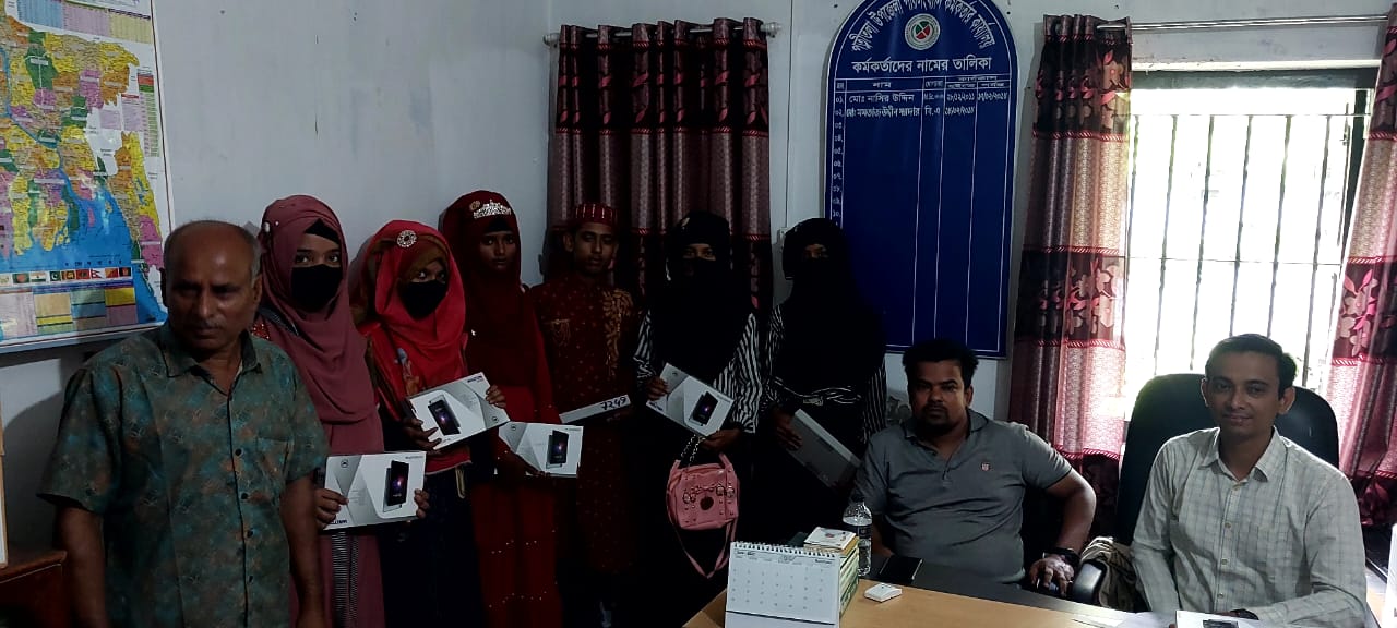 শিক্ষা সহায়ক উপহার হিসেবে মাধ্যমিক বিদ্যালয় সমমানের মাদ্রাসাসমূহের ৯ম ও ১০ম শ্রেণির সমন্বিত মেধা তালিকায় ১ম, ২য় ও ৩য় স্থান অর্জনকারী মেধাবী  শিক্ষার্থীদের মধ্যে "জনশুমারি ও গৃহগণনা ২০২১"প্রকল্প এর ট্যাবলেট বিতরণ