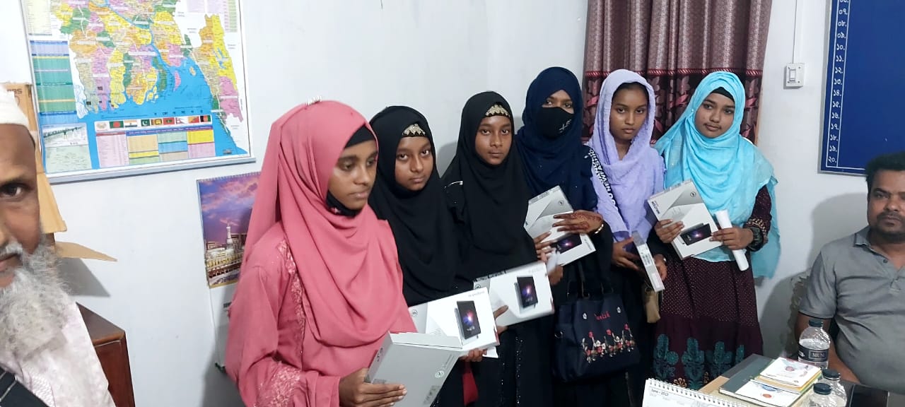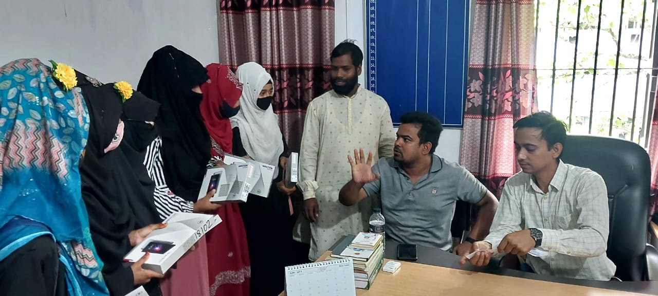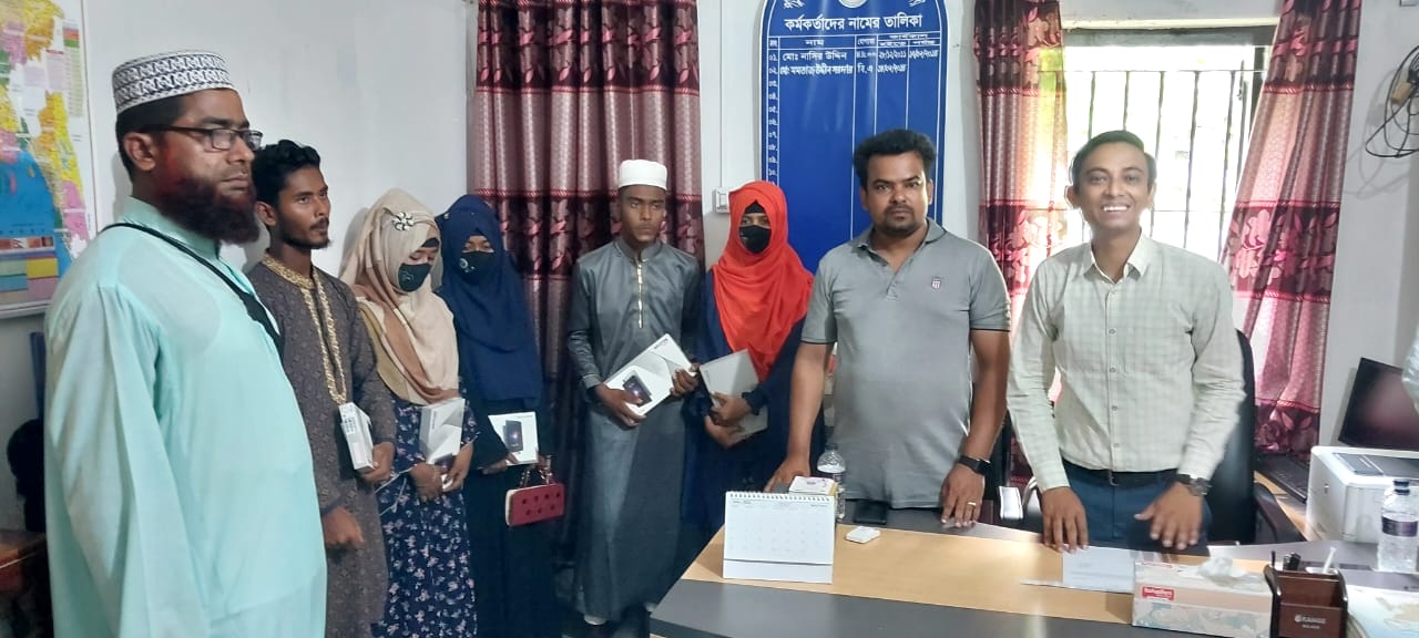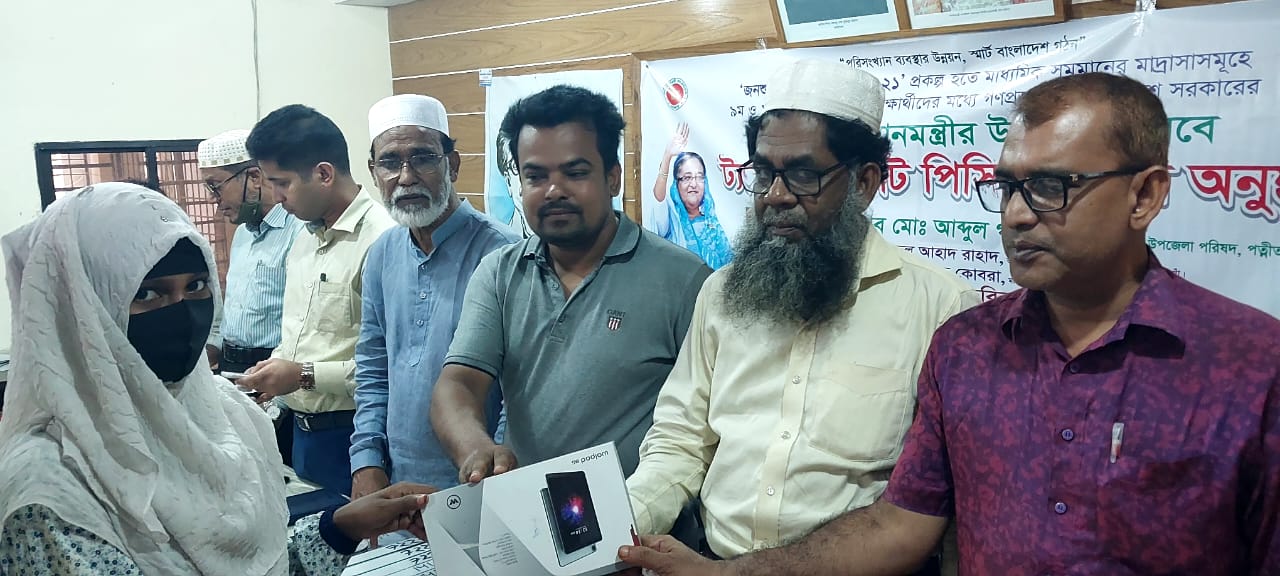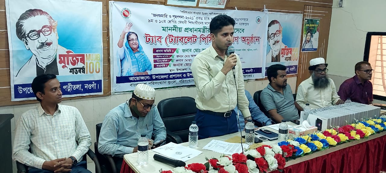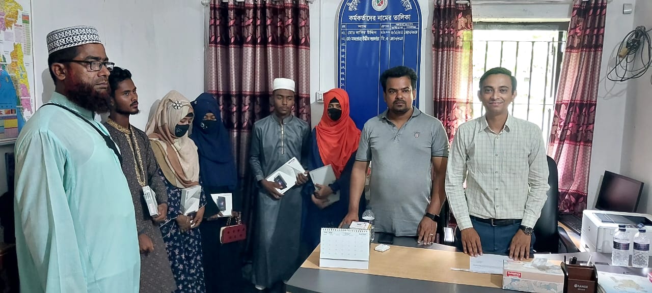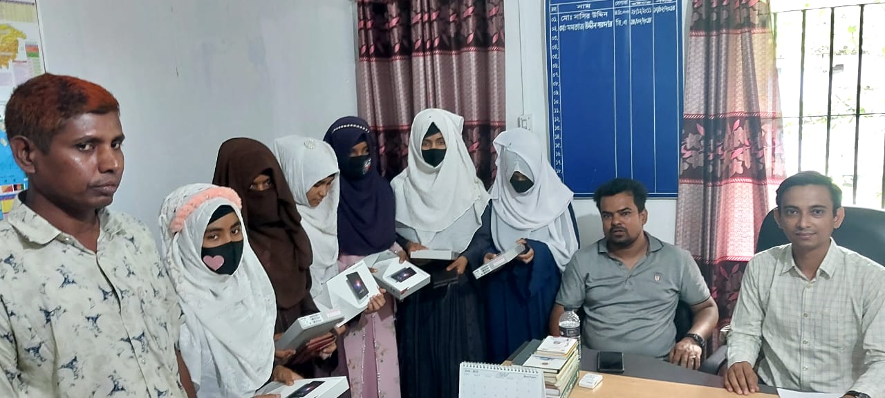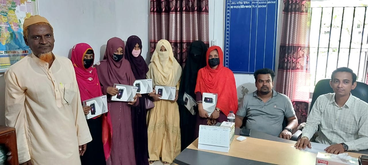 শিক্ষা সহায়ক উপহার হিসেবে মাধ্যমিক বিদ্যালয় সমমানের মাদ্রাসাসমূহের ৯ম ও ১০ম শ্রেণির সমন্বিত মেধা তালিকায় ১ম, ২য় ও ৩য় স্থান অর্জনকারী মেধাবী  শিক্ষার্থীদের মধ্যে "জনশুমারি ও গৃহগণনা ২০২১"প্রকল্প এর ট্যাবলেট বিতরণ